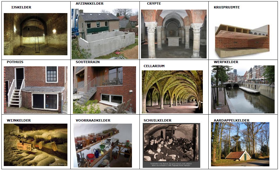 In de lessenserie Het Huis (uit Honderduit - Autobiografisch Schrijven) kwam vandaag bij de autobiocursisten de kelder aan de orde. Nadat iedereen haar herinneringen had voorgelezen, deelde ik afbeeldingen van kelders uit. Ik vertelde dat in dromensymboliek de kelder staat voor het onbewuste. Dat wat je niet weet van jezelf, maar wat toch veel van je handelingen bepaalt. Ik vroeg de cursisten in de les te schrijven over: "Welke kelder past het best bij hoe jij je onbewuste ziet?"