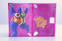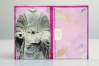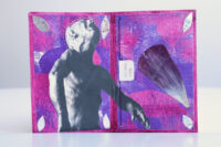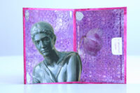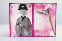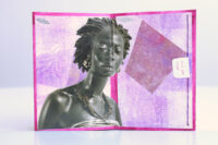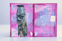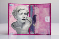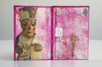 Van mislukte collages heb ik ooit een leuk vlechtwerkje gemaakt. Wat kon ik met het roze boekje? Ik bladerde wat door een Tefaf-catalogus en kwam mooie radeloze beelden tegen. Zwart en zwaar. Weet je wat? Ik maak er gewoon een mega somber boekje van.