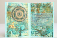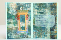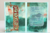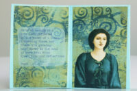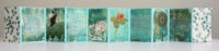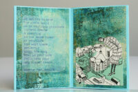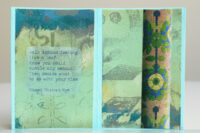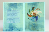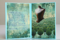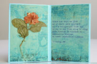 Vanwege de groentinten kwam ik al gauw in een bladerige stemming en vond ik teksten die met bos of bloemen te maken hadden. En daar dan weer plaatjes bij. Het echte bloemetje rolde uit een boekje toen ik was begonnen met het uitstoffen van de boekenkast (nog niet verder gevorderd dan 3 planken, helaas).